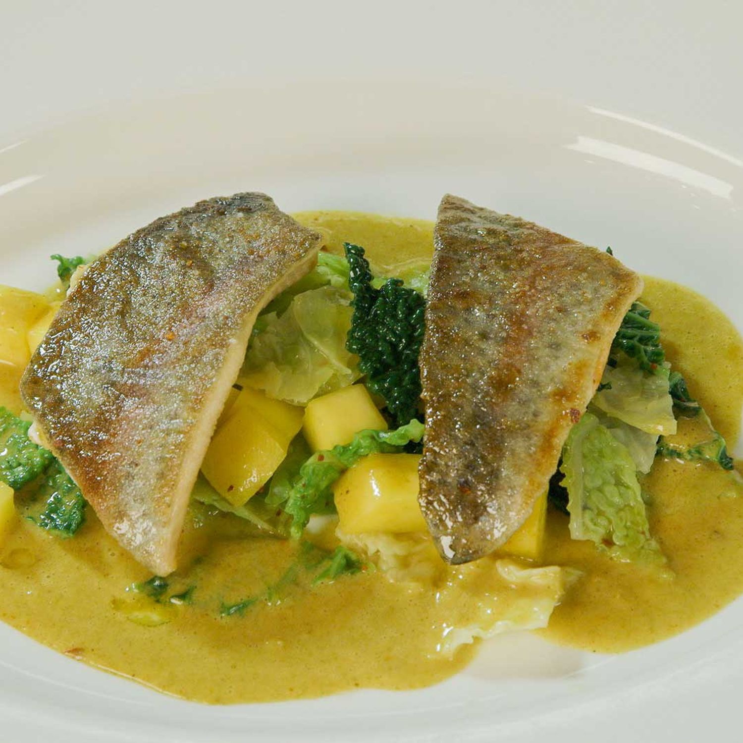 lachsforelle auf mango wirsing mit thaicurry sauce hofer rezeptwelt